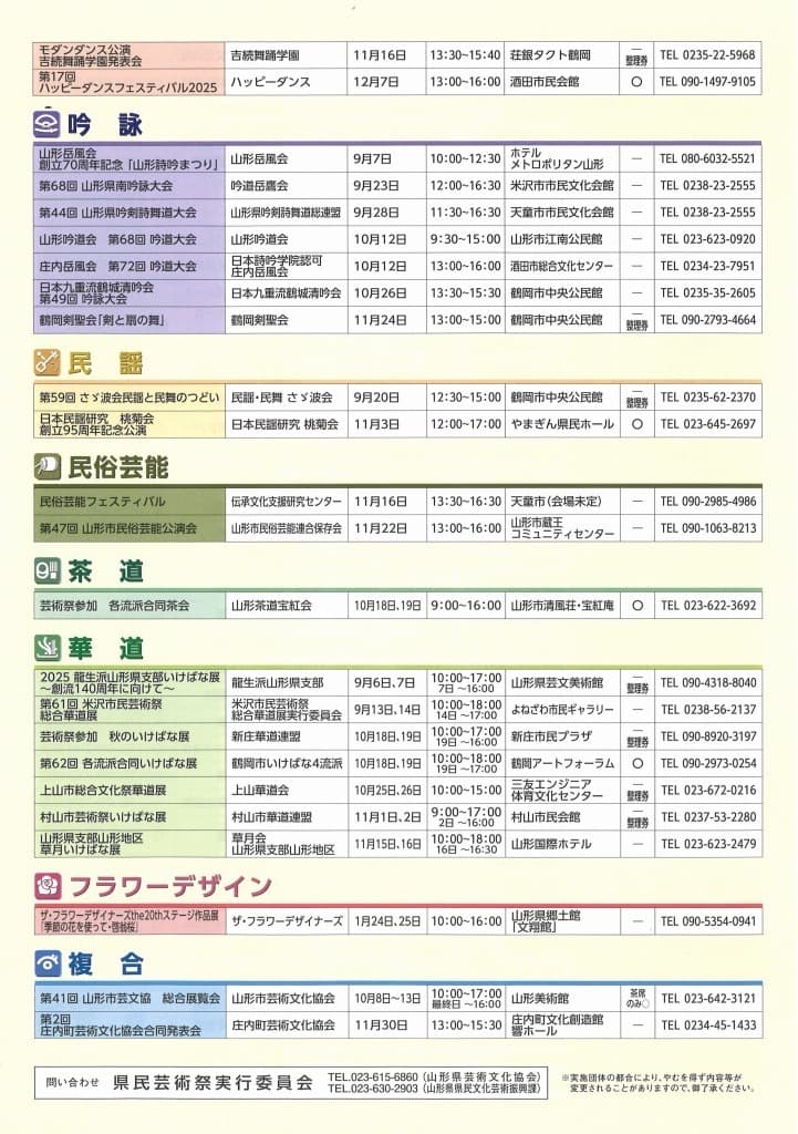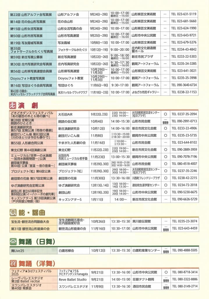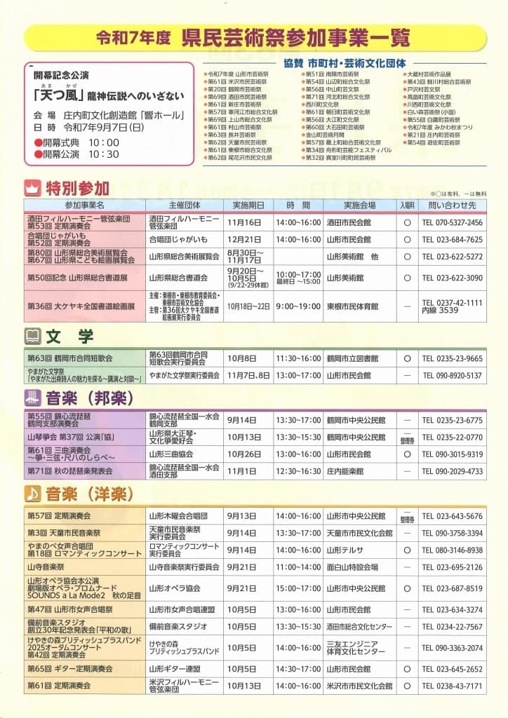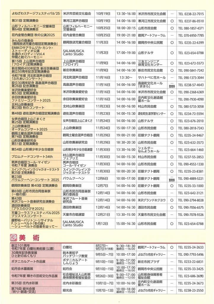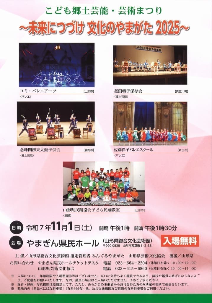(2) こども郷土芸能芸術まつり 11月1日 やまぎん県民ホール (3) 第30回山形県トップコンサート 令和8年3月20日 やまぎん県民ホール (4) 文翔館創作劇場 令和8年3月8日 遊学館ホール