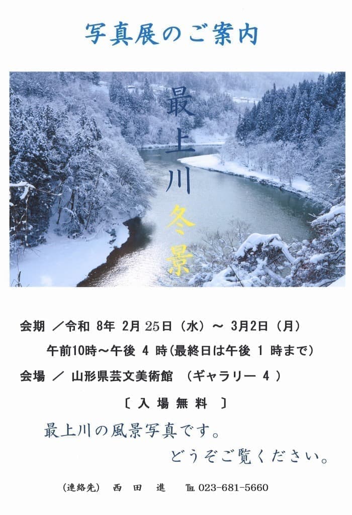 山形県の母なる川「最上川」の長井市から大江町までの冬の風景写真展を開催します。ご高覧賜れば幸いです。
